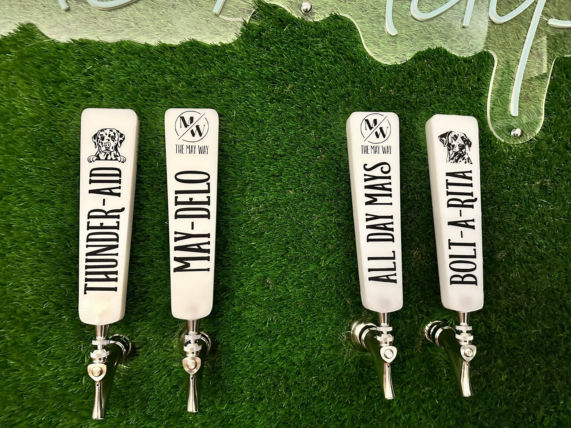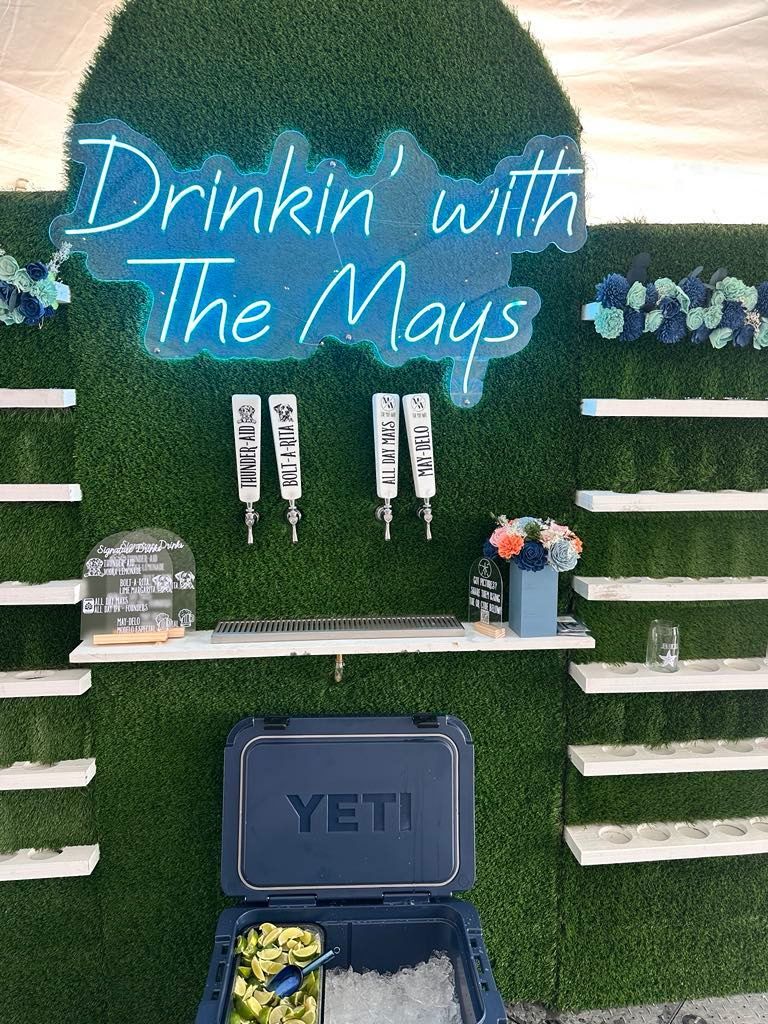 We’re Jess & Dustin May, the husband-and-wife team behind May Way Walls & Events. Our journey started with a creative twist at our own wedding—a custom beer & cocktail seating chart that guests absolutely loved! That one idea sparked the vision for helping other couples and event hosts bring unique, memorable details to their celebrations.
